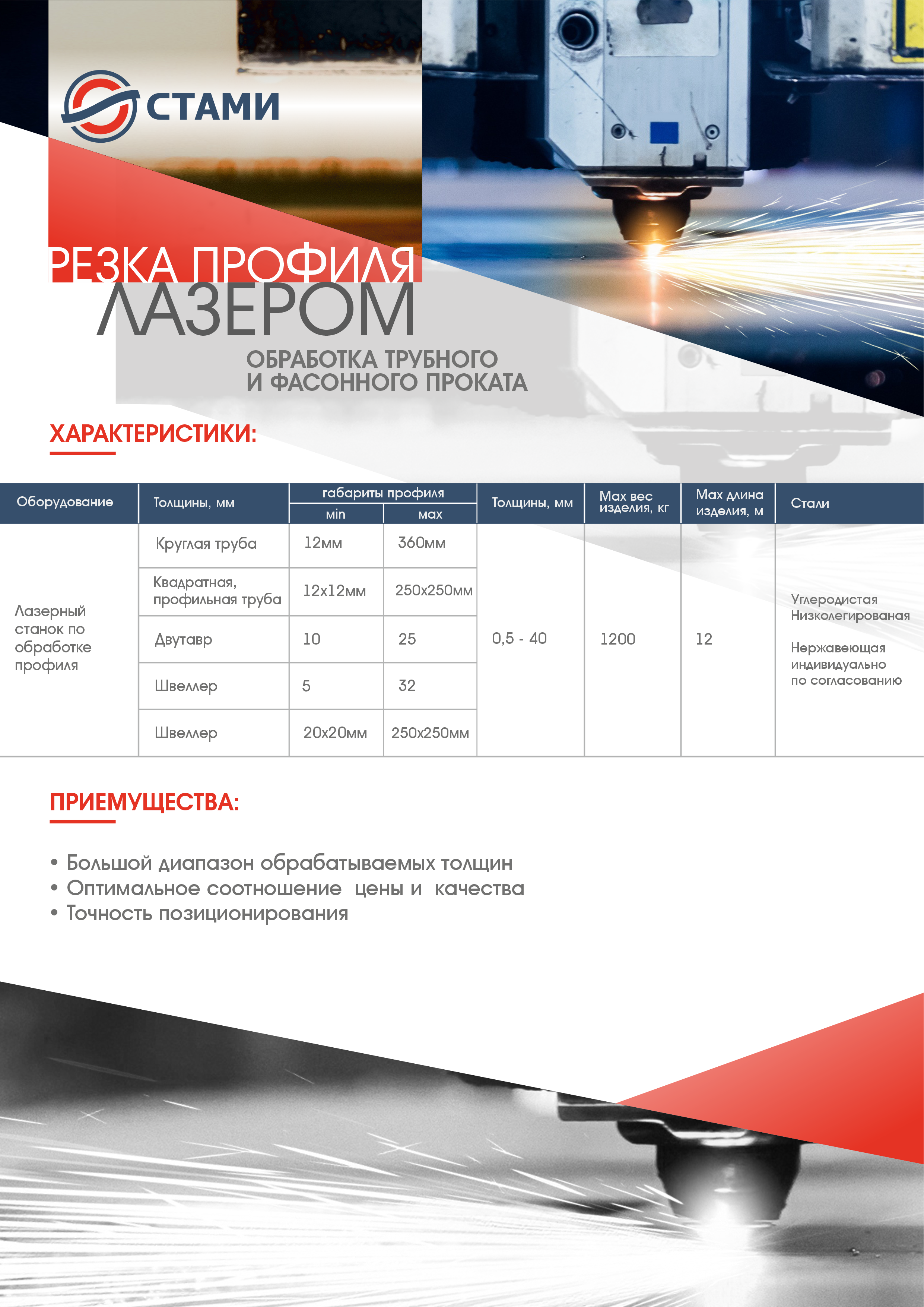 Таким образом, СМЦ «Стами» осуществляет раскрой холоднокатаного листа конструкционных марок сталей, в том числе оцинкованный и с лакокрасочным полимерным покрытием толщиной от 0,3 до 2 мм и длиной от 300 до 4000мм.